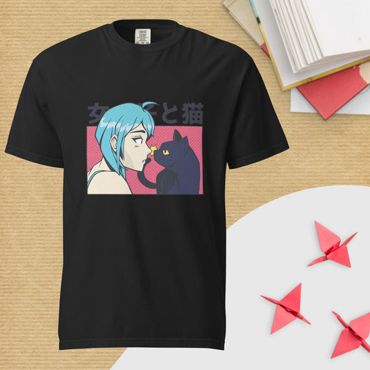 Cat and Anime Lovers: Anime Cat n Girl Heavyweight Tee